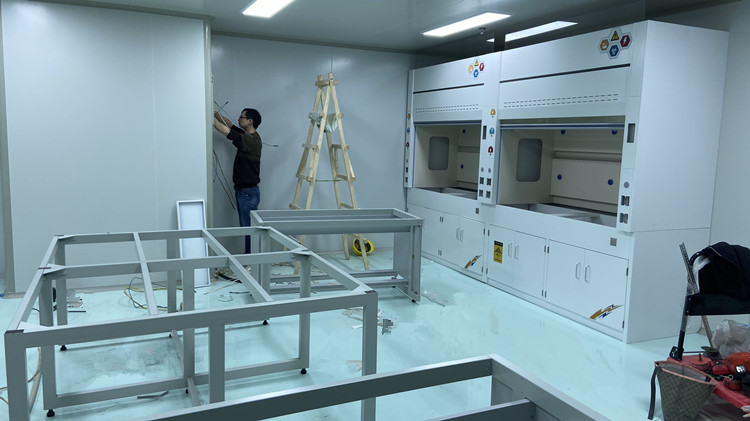 這邊是另外一個房間的通風(fēng)柜和鋼木實驗臺再安裝,由于現(xiàn)場安裝圖片很多,只能發(fā)部分給客戶參考